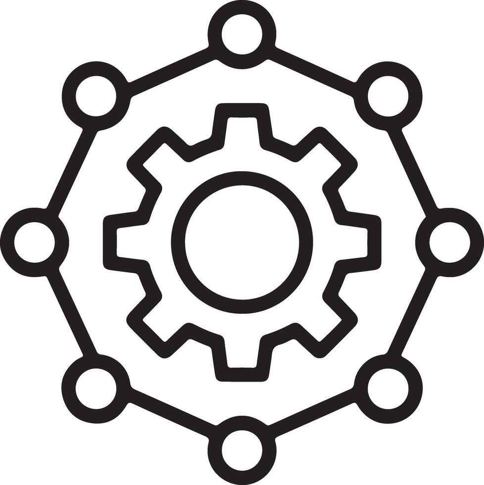 Abstract geometric network structure with central gear symbolizing connection and integration Pro Vector