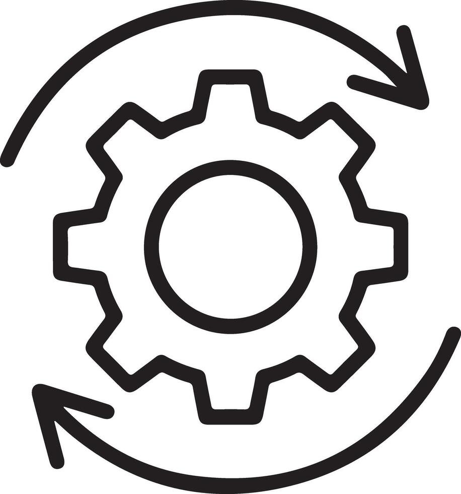 Simple outline icon of a gear with circular arrows representing process and workflow Pro Vector