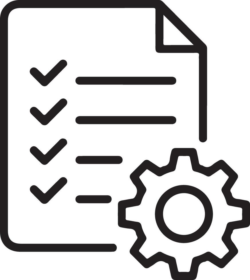 Checklist document with checkmarks and a gear icon representing task completion and process Pro Vector