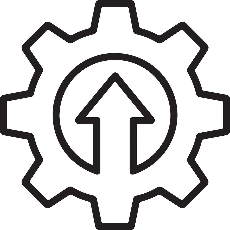 Simple outline icon of a gear with an upward arrow inside representing progress and development Pro Vector