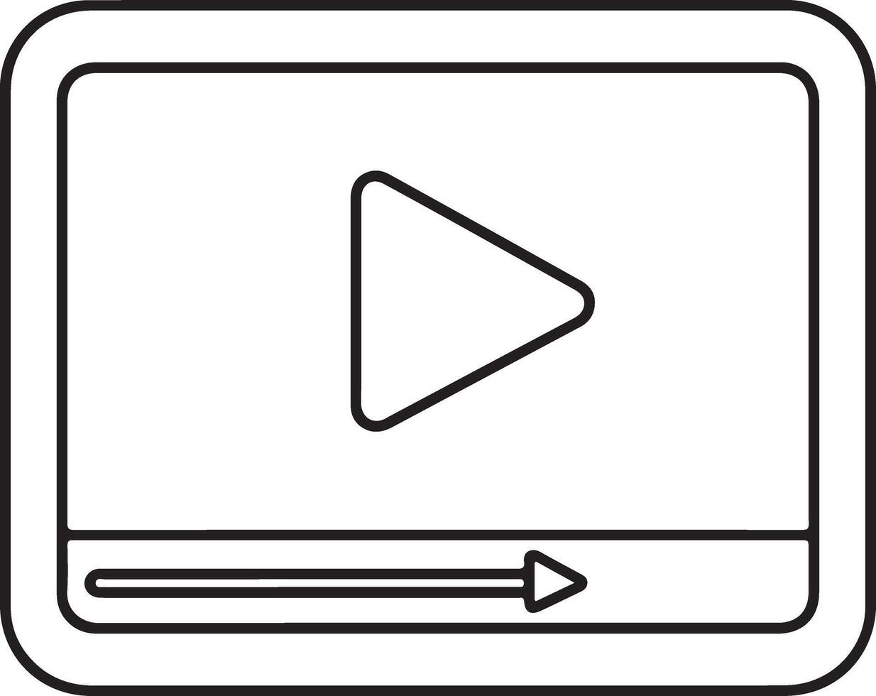 Simple line art icon of a player interface with a play button and progress bar Pro Vector