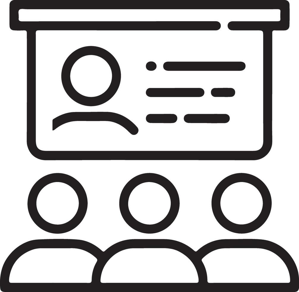 Simple line icon depicting a presentation with a speaker and audience in a classroom setting Pro Vector