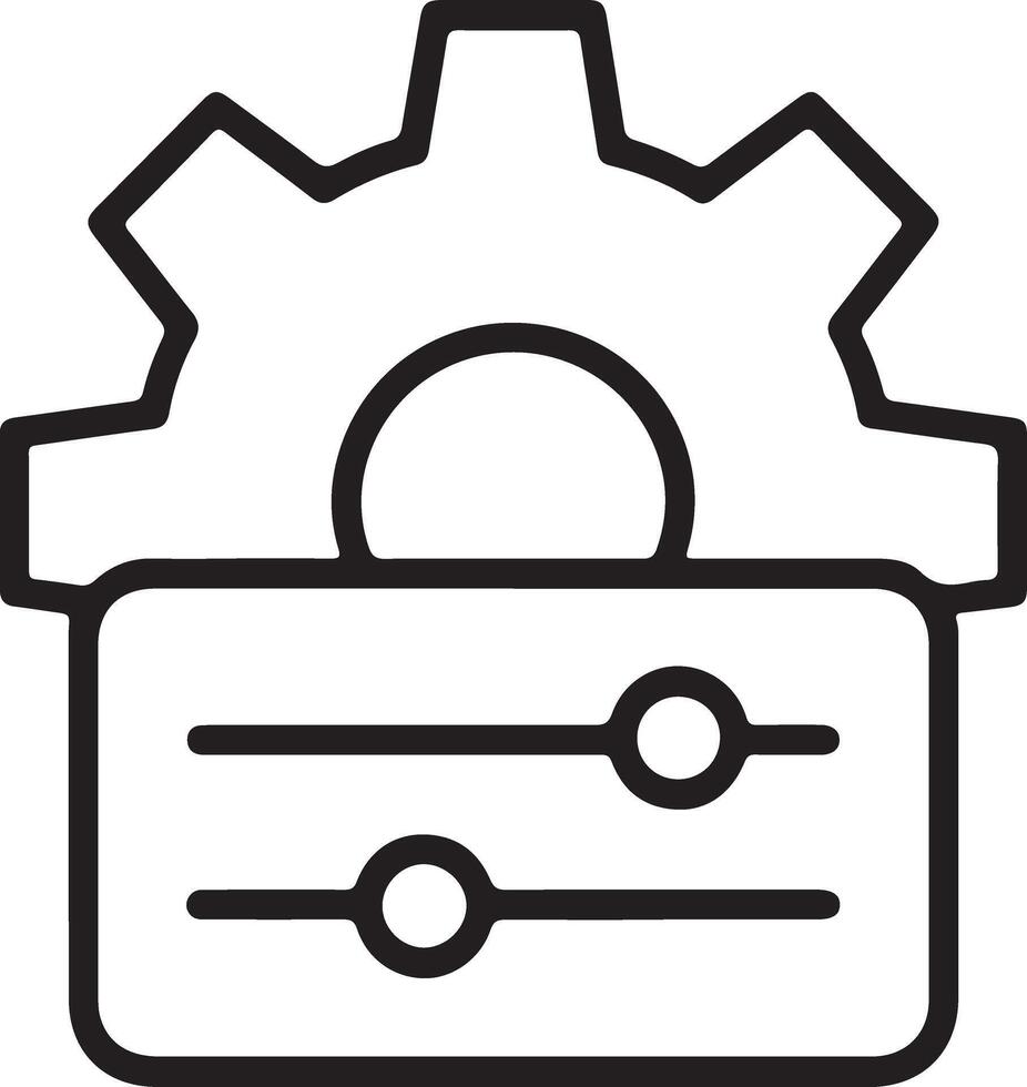 Abstract outline icon representing settings and configuration with gears and sliders Pro Vector