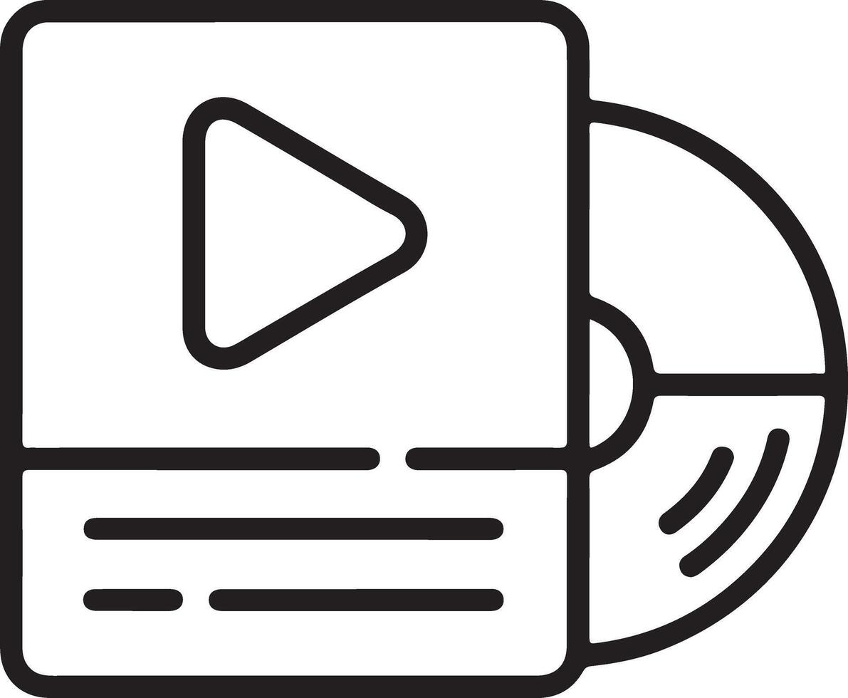 Simple line art icon representing a game case with a play button and a disc Pro Vector