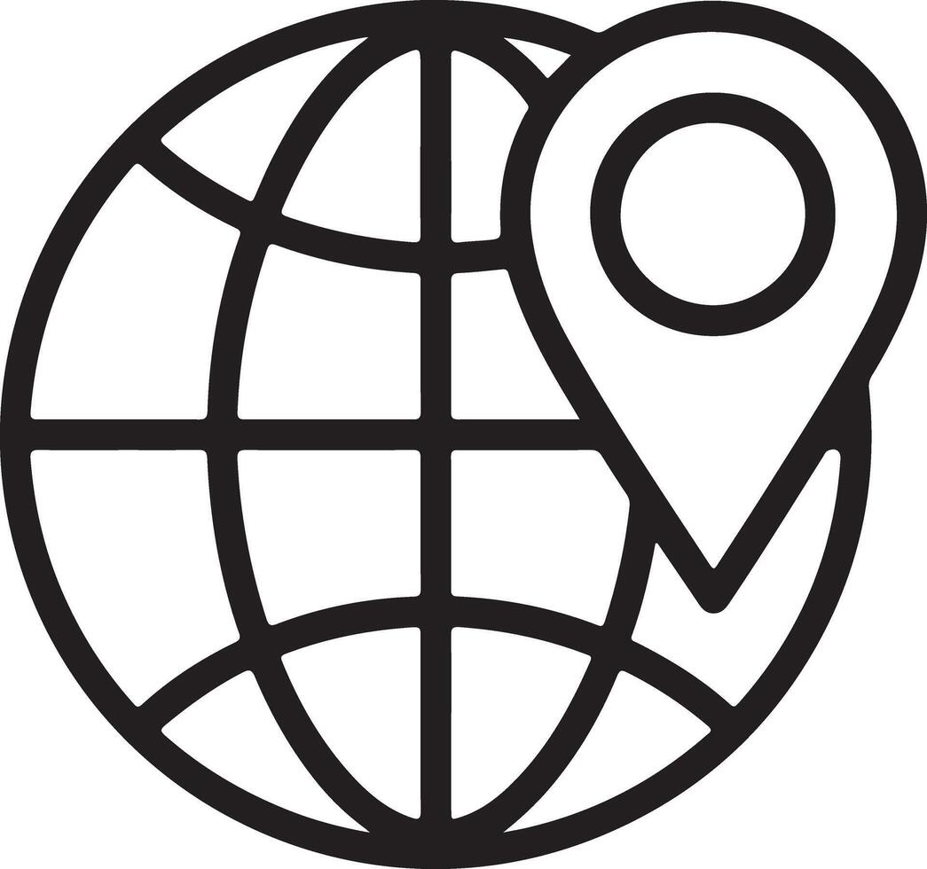 Simple line art icon of a globe with a location pin marker showing global navigation Pro Vector