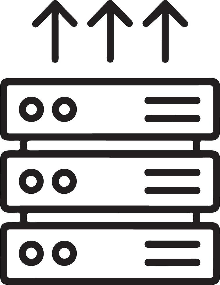 Conceptual illustration of data servers with upward arrows indicating data transfer or upload process Pro Vector