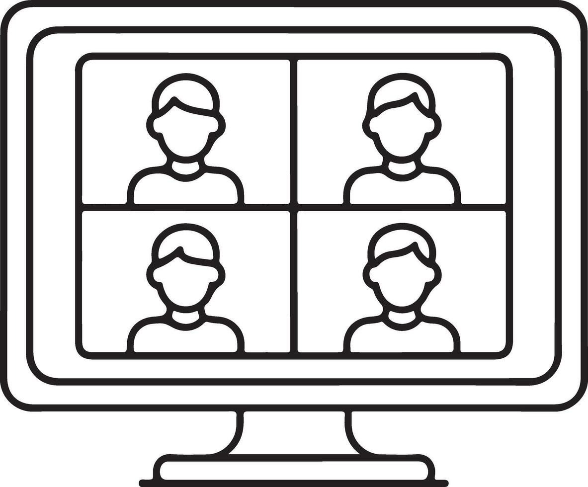 Computer screen displaying a conference call with four participants in a grid layout Pro Vector