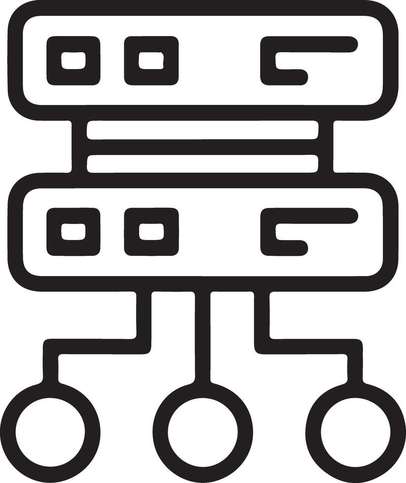 Stylized outline icon representing network servers connected to multiple devices or nodes Pro Vector
