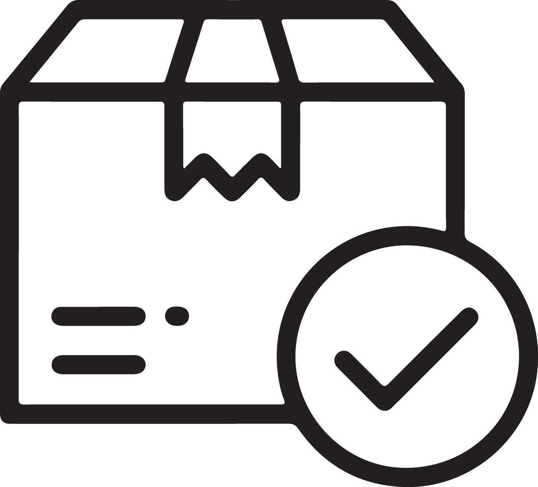 Simple line art icon of a shipping box with a check mark in a circle indicating delivery or completion Pro Vector