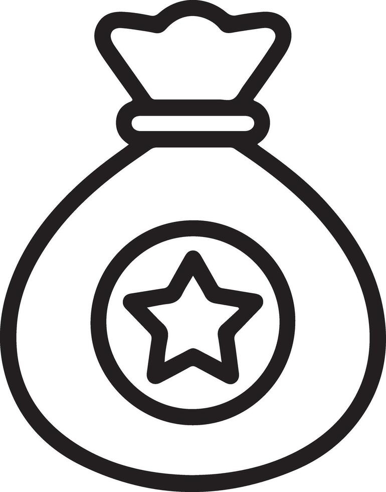 Simple outline icon of a drawstring bag with a star symbol inside a circle on a white background Pro Vector