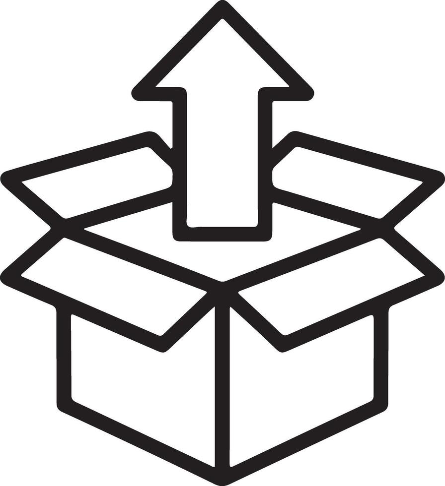 Open cardboard box with an upward pointing arrow emerging from inside symbolizing delivery or shipping Pro Vector