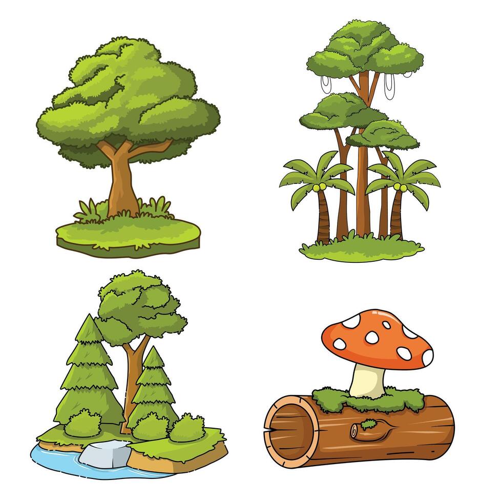 Set of cartoon tree illustrations isolated on white. Simple and flat design. Tree icons with forest concepts. Pro Vector
