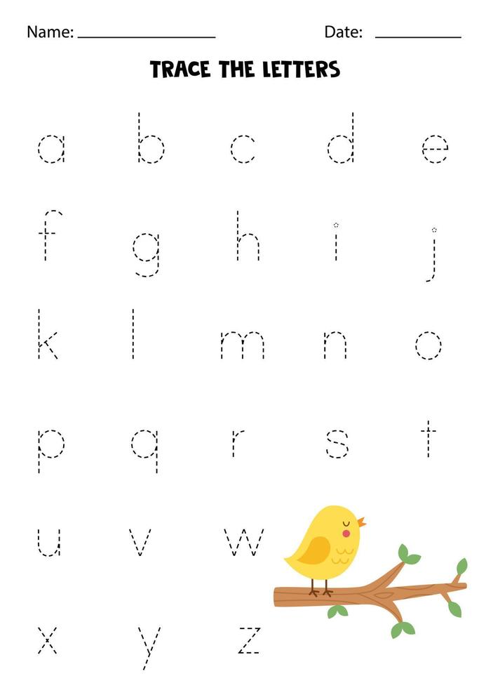 Learning alphabet. Tracing letters. Bird on branch. Pro Vector