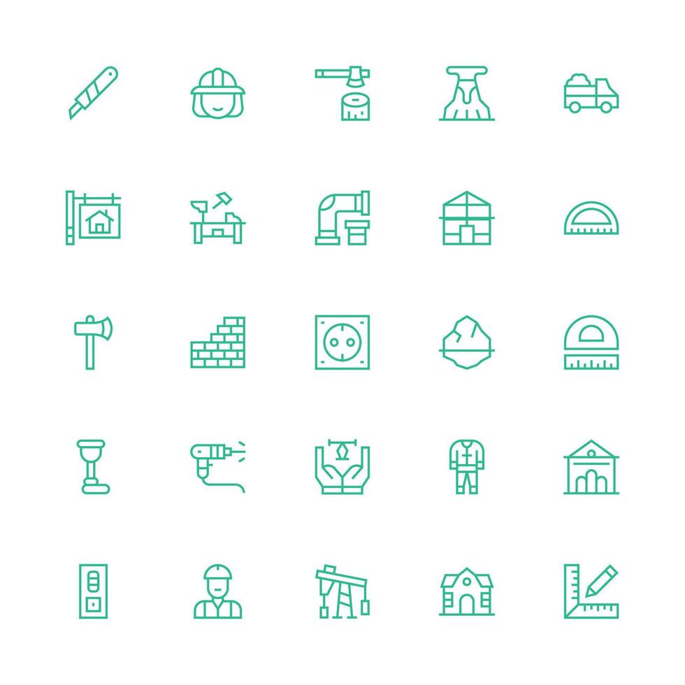 Medium Stroke Outline Icons from Construction Set with 25 Vectors Quick Access Icons for UI Development Free Vector