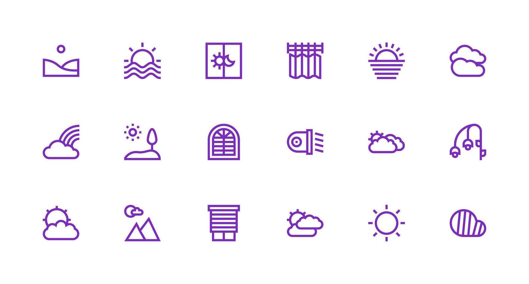 Daylight Set with 18 Strong Stroke Line Icons UI Icon Set Free Vector