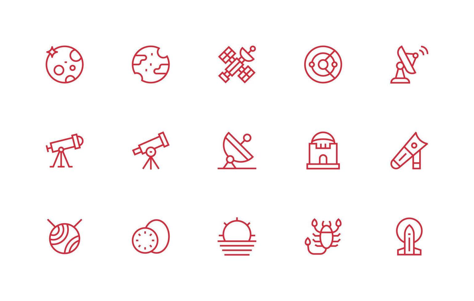 Regular Line Style Astronomy Icons with 15 Vectors Fully Editable Icon Set for Web