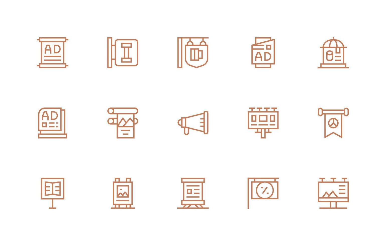 Regular Line Icons from Poster Set with 15 Vectors Interface Icon Collection Free Vector