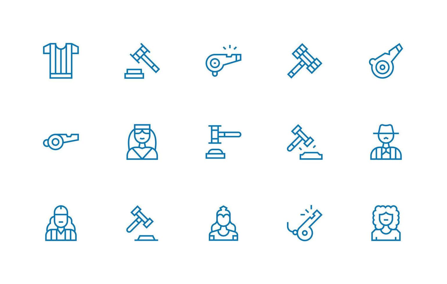 Judge Icon Collection with 15 Regular Line Designs Icon Pack for UI Free Vector