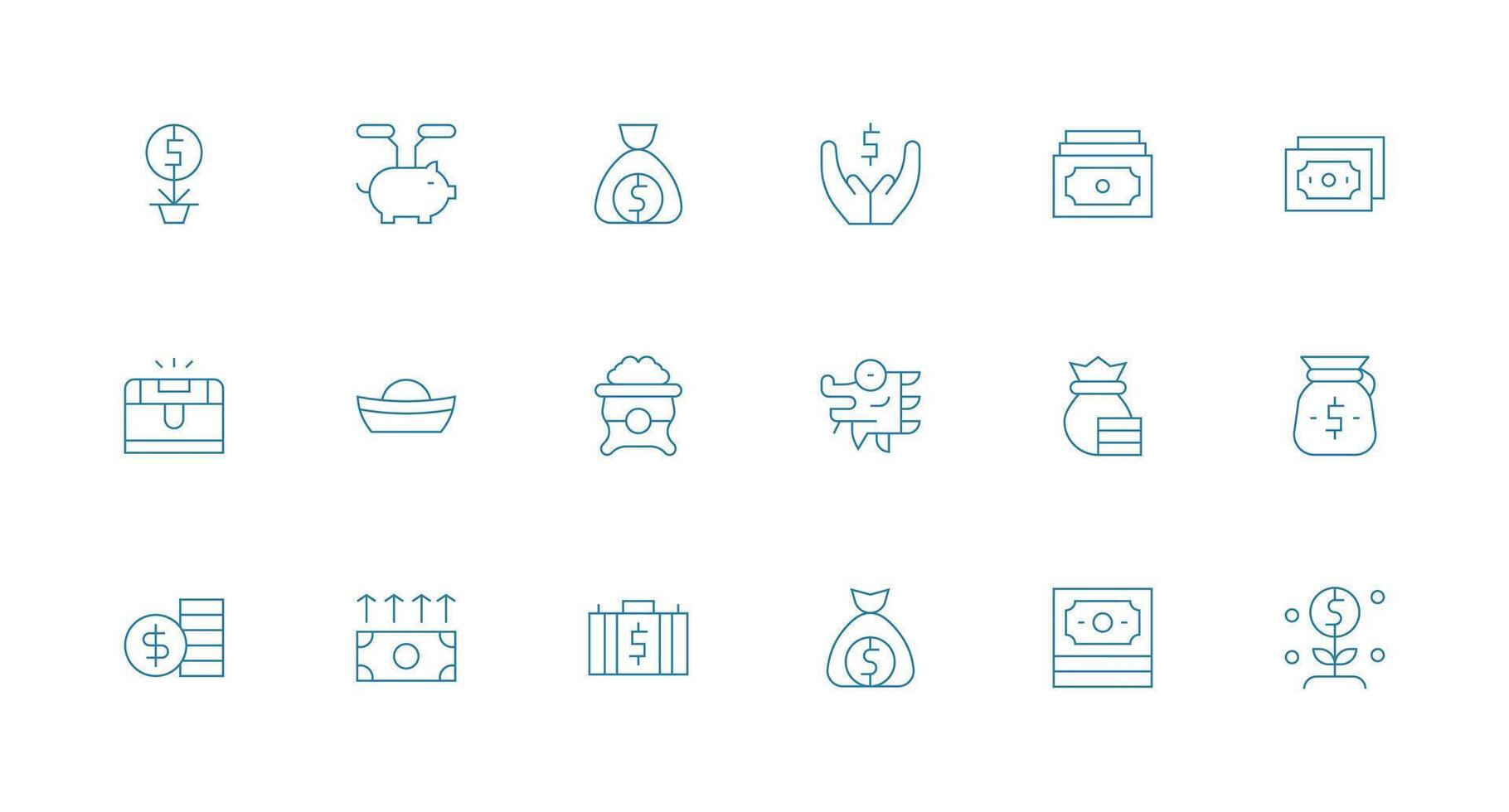 18 Minimal Line Designs for Wealth Icons Interface Icon Collection for Daily Projects vector