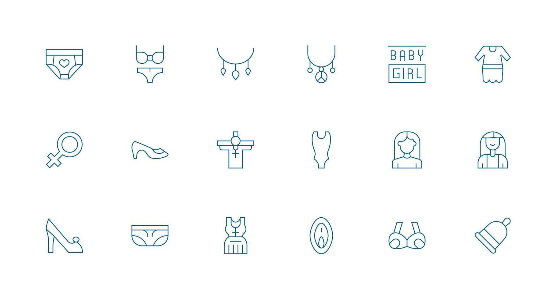 18 Minimal Line Style Icons from Feminine Collection Icon Set for Web vector