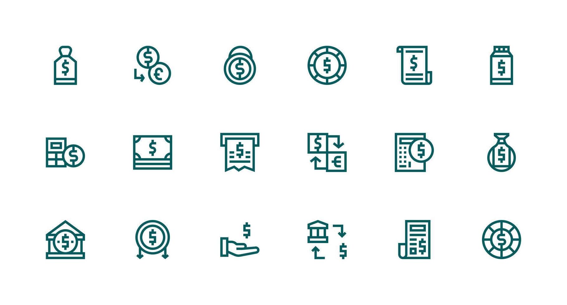 Usd Design Icons featuring 18 in Strong Stroke Line Style Flexible Icon System for Web Interfaces vector