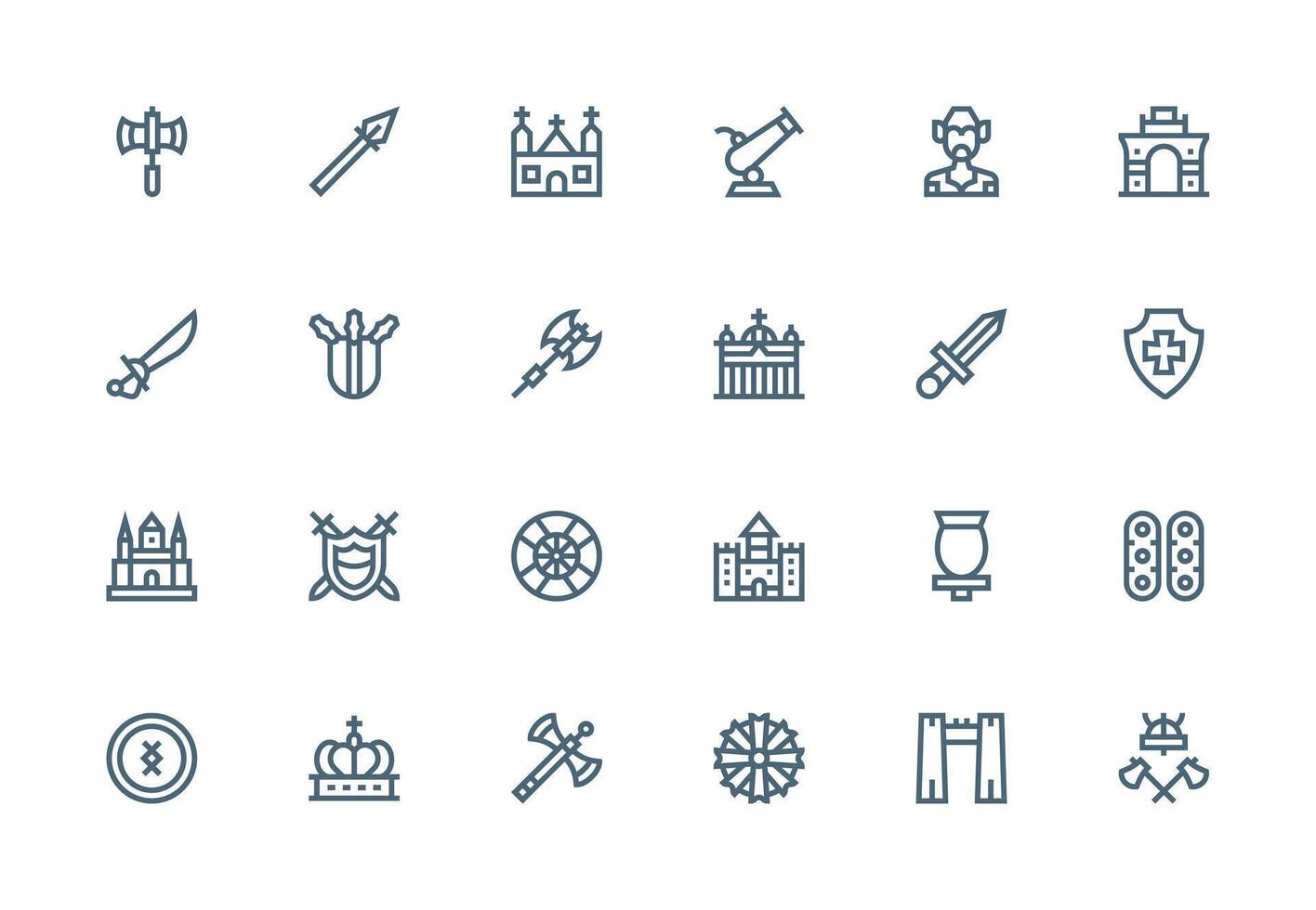 Medieval Visual Pack containing 24 Thick Line Line Icons Scalable Icons for Cross-Platform Interfaces vector