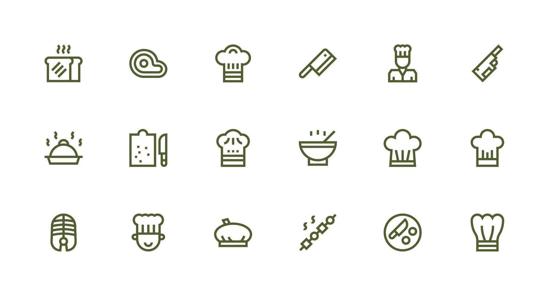 Cook Design Icons featuring 18 in Strong Stroke Line Style Simple Icons for Interface and Wireframes vector