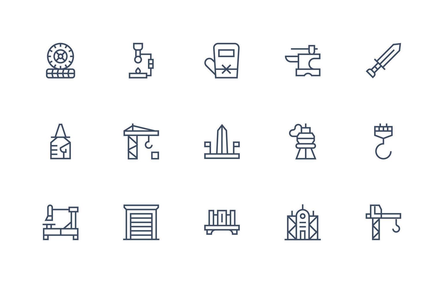 Steel featuring 15 Icons in Regular Line Design Reusable Icon Set vector