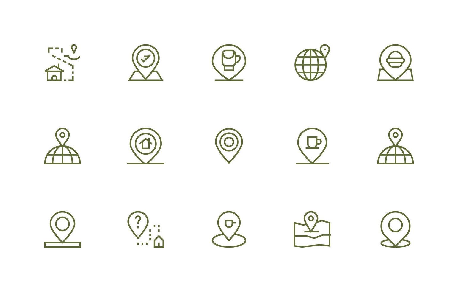 Geolocation Icon Collection with 15 Regular Line Designs Multi-Style Icon Collection Free Vector