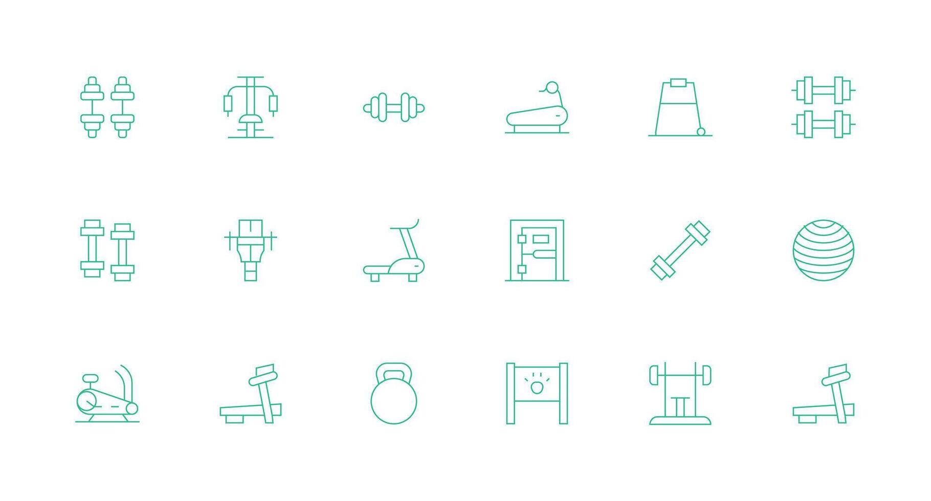 Gym Equipment Visual Pack containing 18 Minimal Line Icons Neatly Designed Icons for Web Platforms vector
