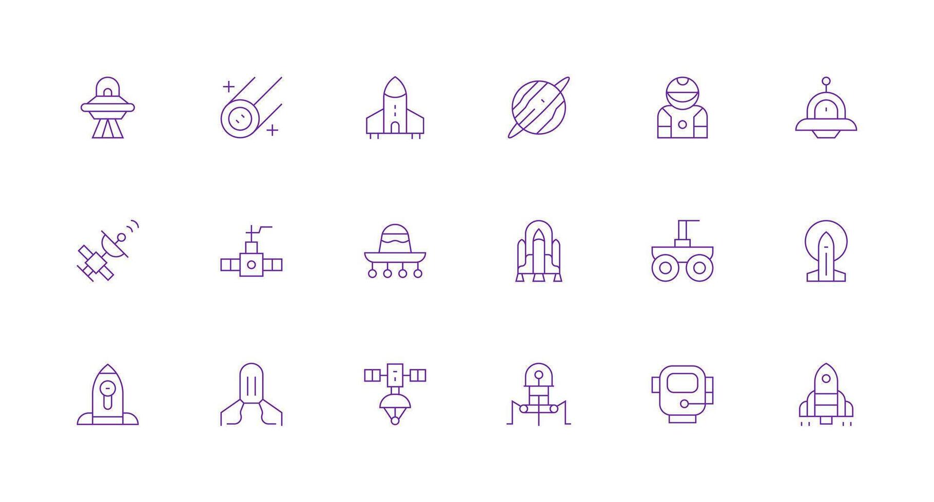 Minimal Line Style Spacecraft Icons with 18 Vectors Web and App Icon Pack Collection