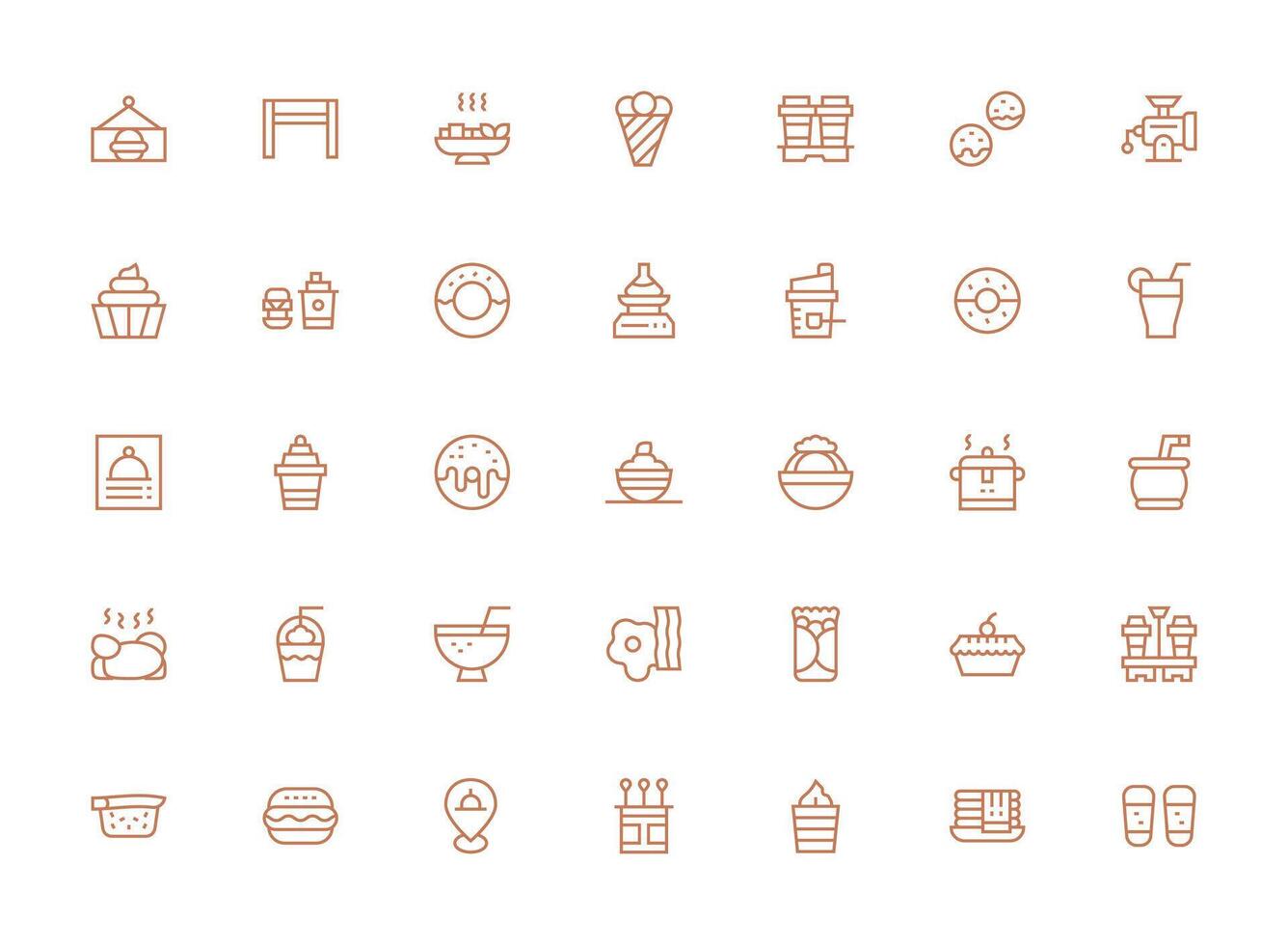 Regular Clean Line Style Cafe Icons with 35 Vectors Sharp Icons for Presentations Free Vector