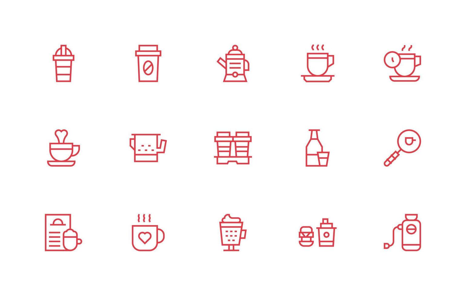 Coffee Design Icons featuring 15 in Regular Line Style Multi-Style Icons for Creative Projects vector