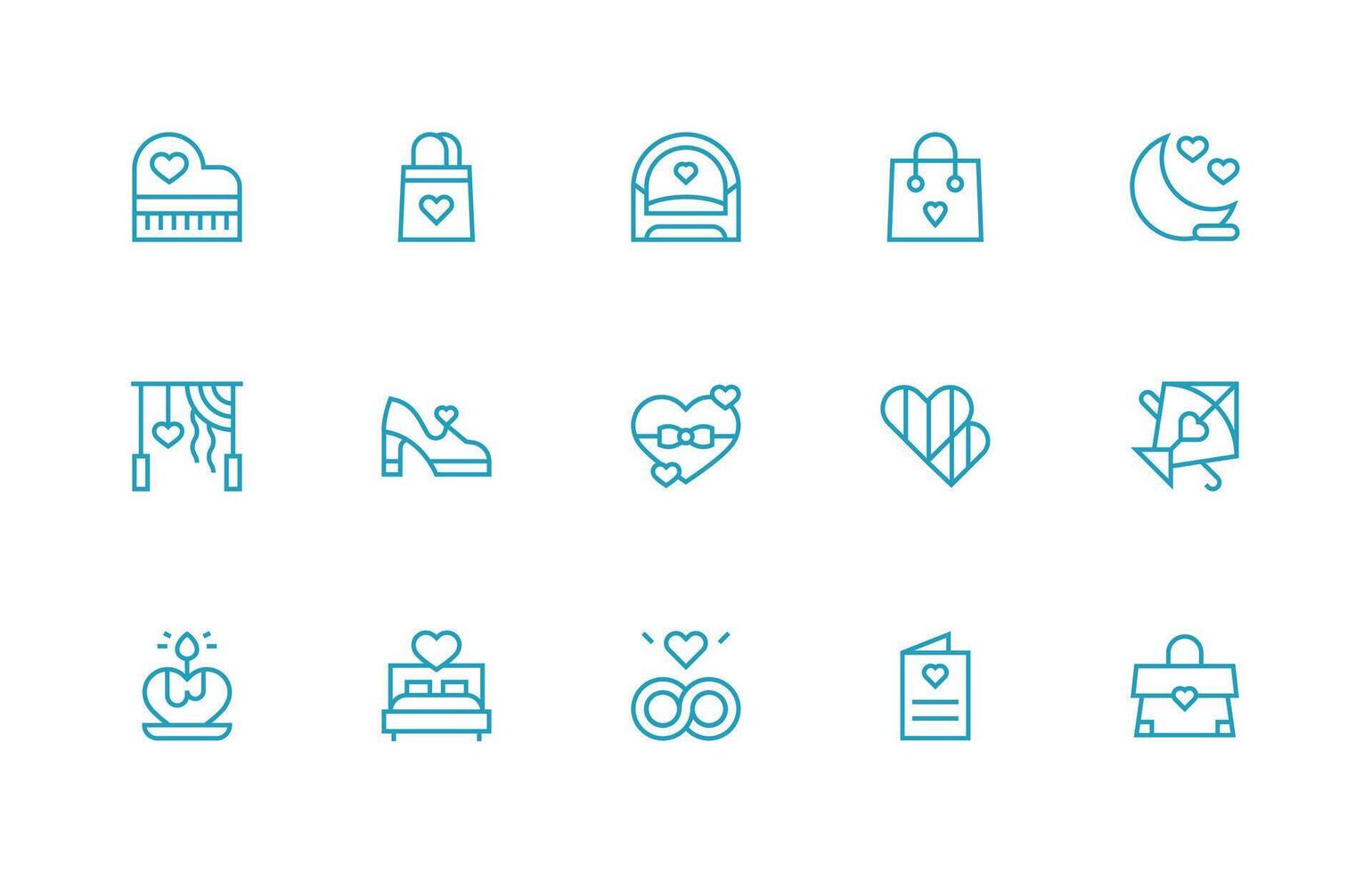 Romantic Icon Collection with 15 Regular Line Designs Icons Built for Visual Consistency Pack vector