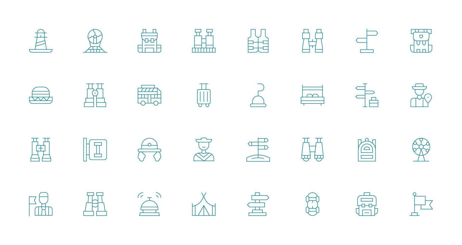Tourist Visual Pack containing 32 Thin Line Icons Minimal Icon Set for Interface Projects vector