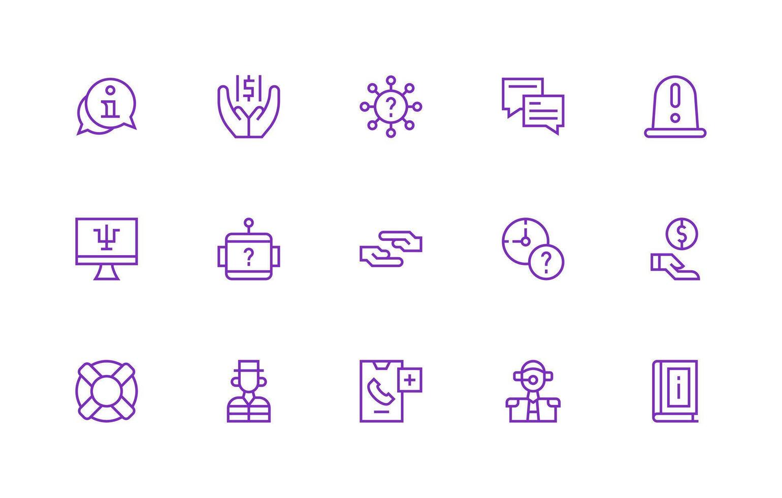 Help Design Icons featuring 15 in Regular Line Style Design Ready Icon Set for Teams vector