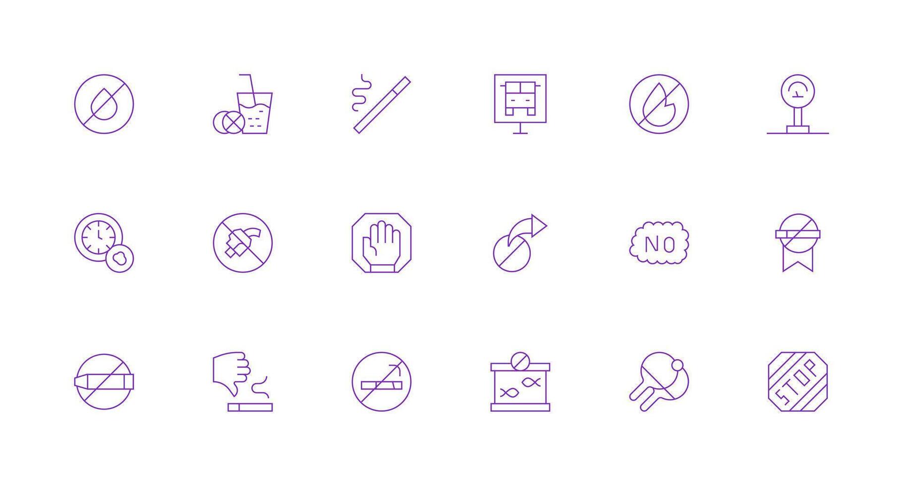 Minimal Line Style Restriction Icons with 18 Vectors Simple Icons for Interface and Wireframes