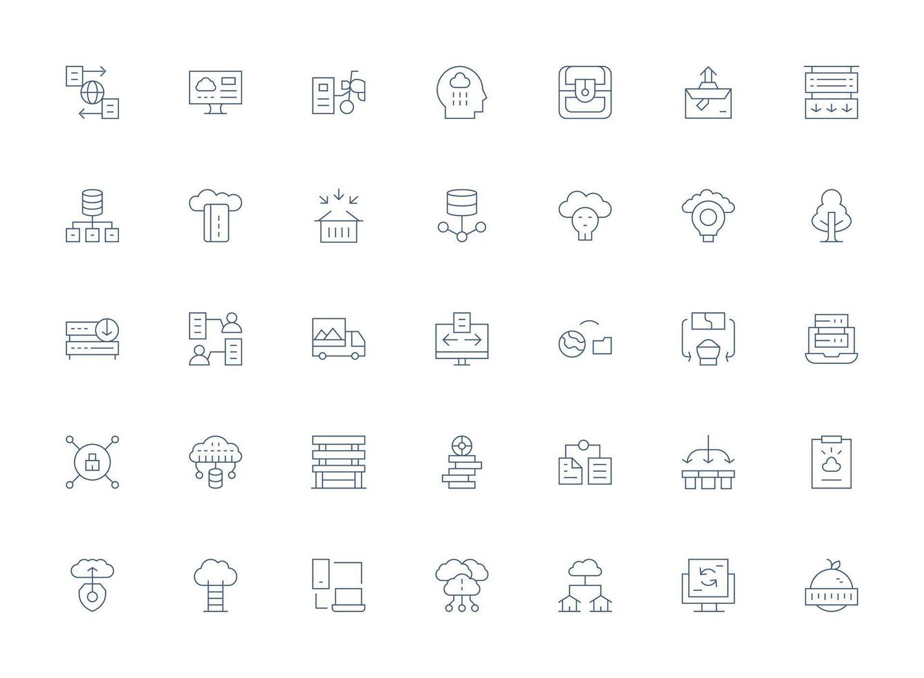 Light Line Icons from Cloud Storage Set with 35 Vectors Layout Icon Collection Free Vector