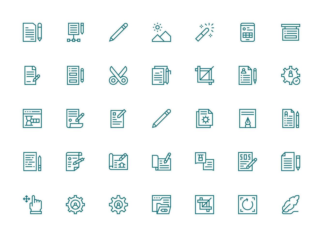 35 Icons for Edit in Regular Clean Line Format Essential Icon Set for Teams vector