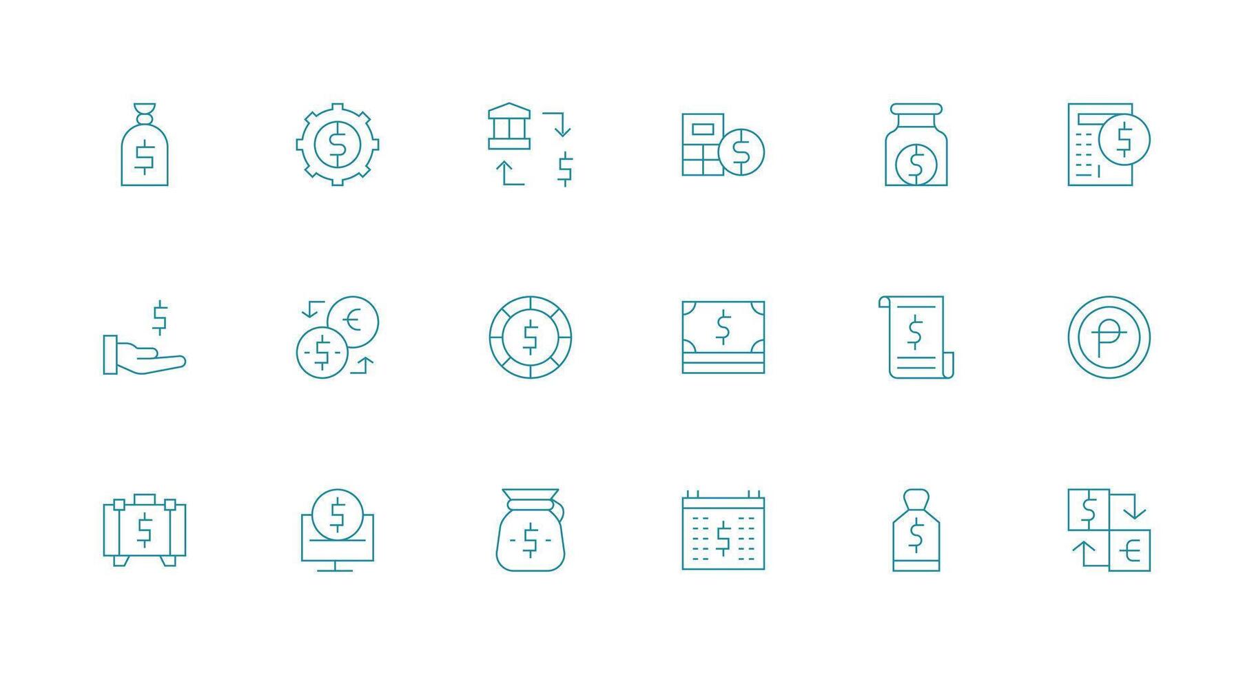 Usd Visual Pack containing 18 Minimal Line Icons Fully Editable Icon Set for Web vector