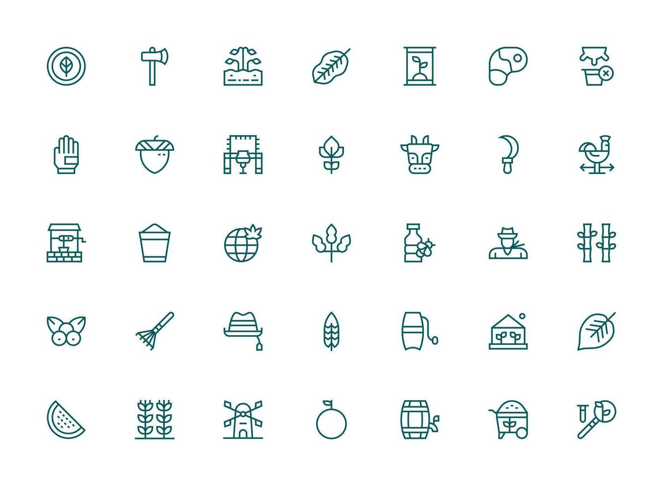 Agriculture including 35 Regular Clean Line Illustrations Quick Access Icons for UI Development Free Vector