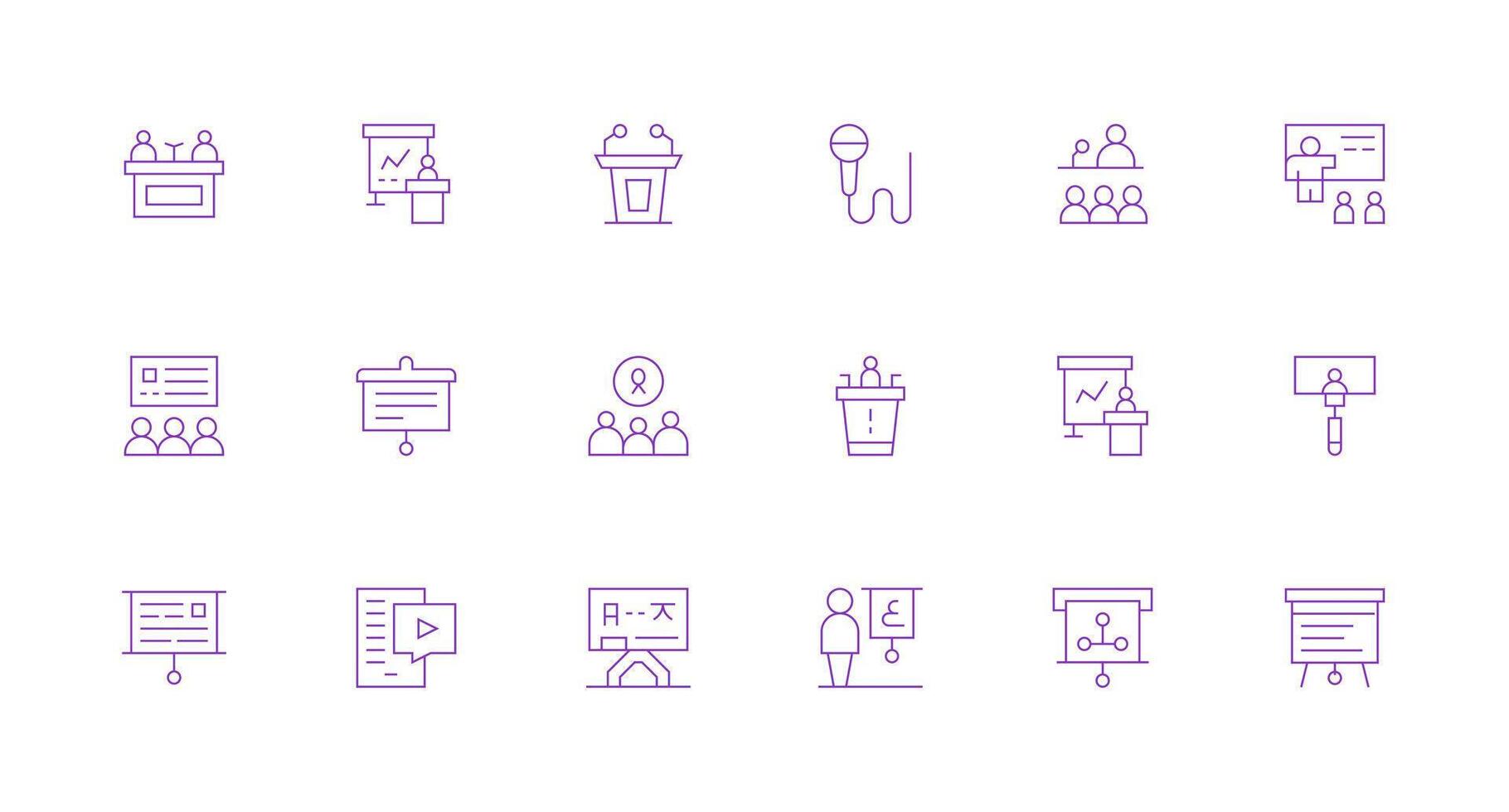 Lecture Icon Set with 18 Minimal Line Graphics Full Icon Library for UI Designers Free Vector