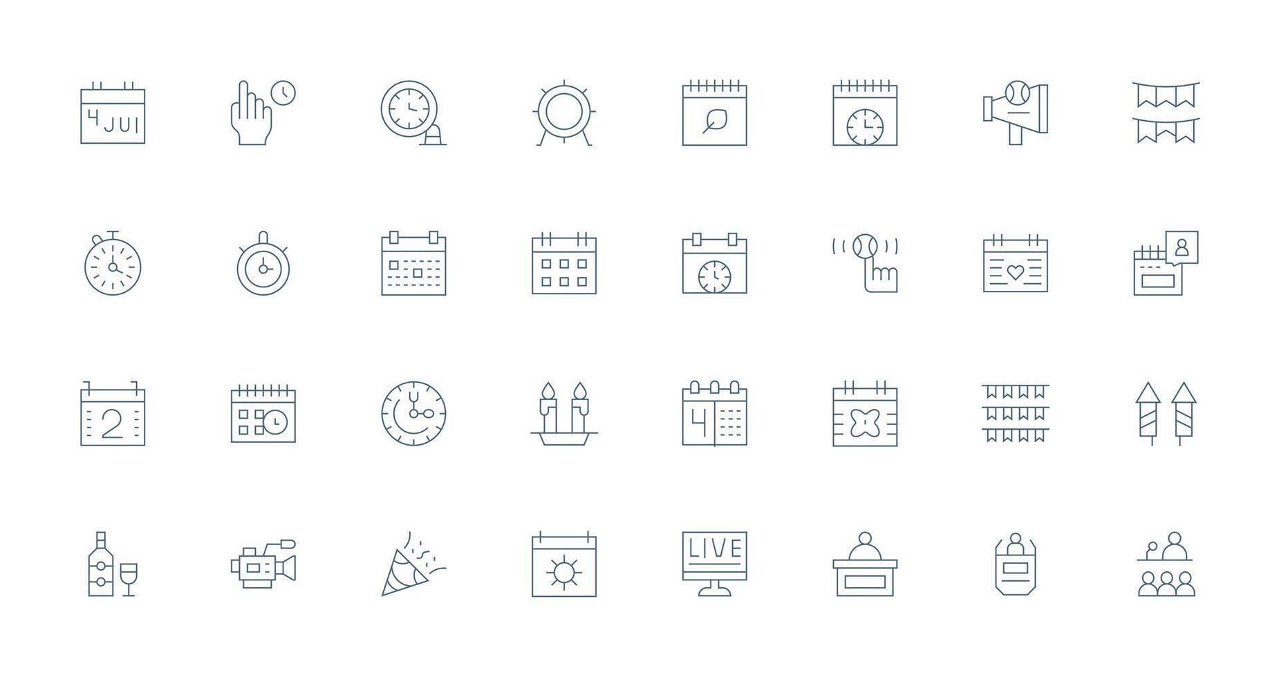 Event Design Icons featuring 32 in Thin Line Style Compact Icon Set vector