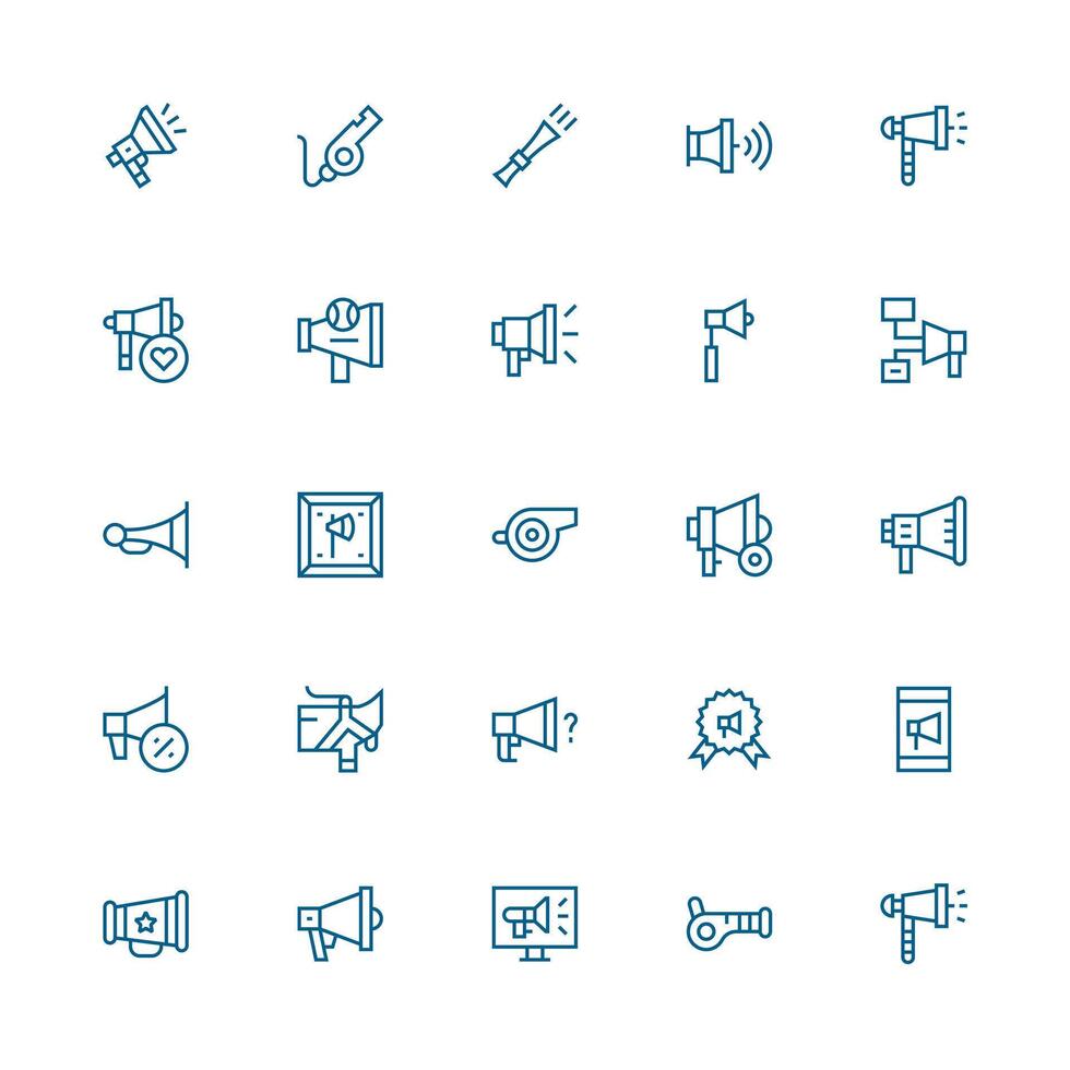 Megaphone Visual Pack containing 25 Medium Stroke Outline Icons Balanced Icon Set for Functional Design Free Vector
