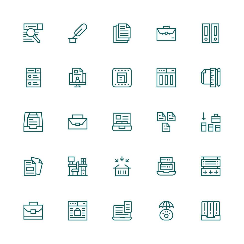 Files Icon Set with 25 Medium Stroke Outline Graphics Functional Icon Series Free Vector