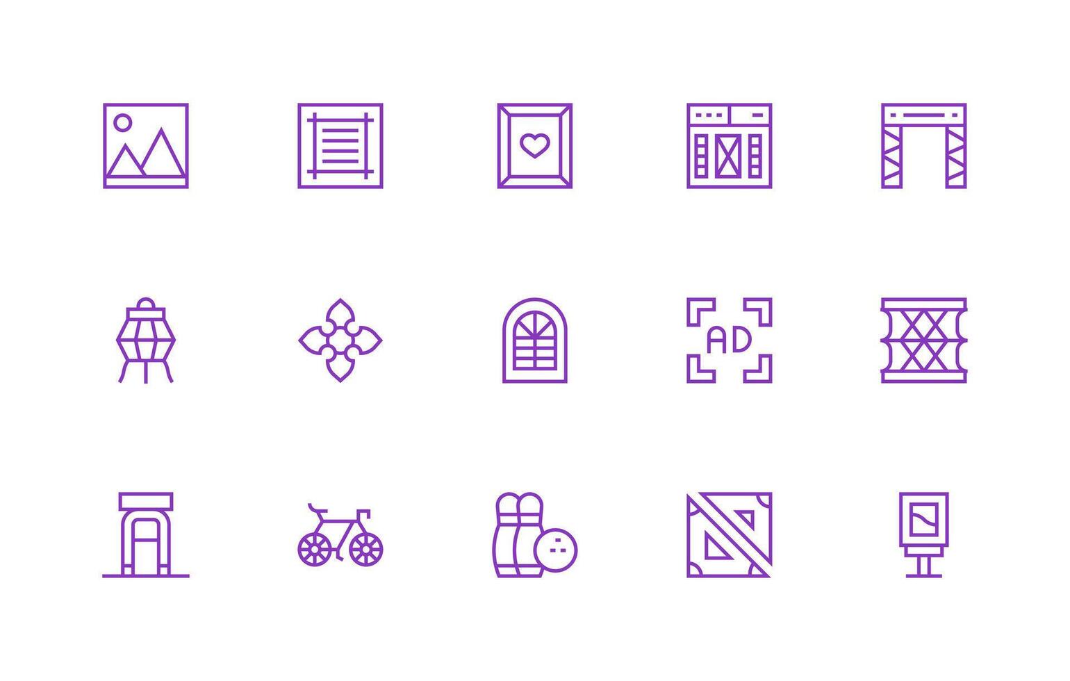 Frame Icon Set with 15 Regular Line Graphics Simple Icon Pack vector