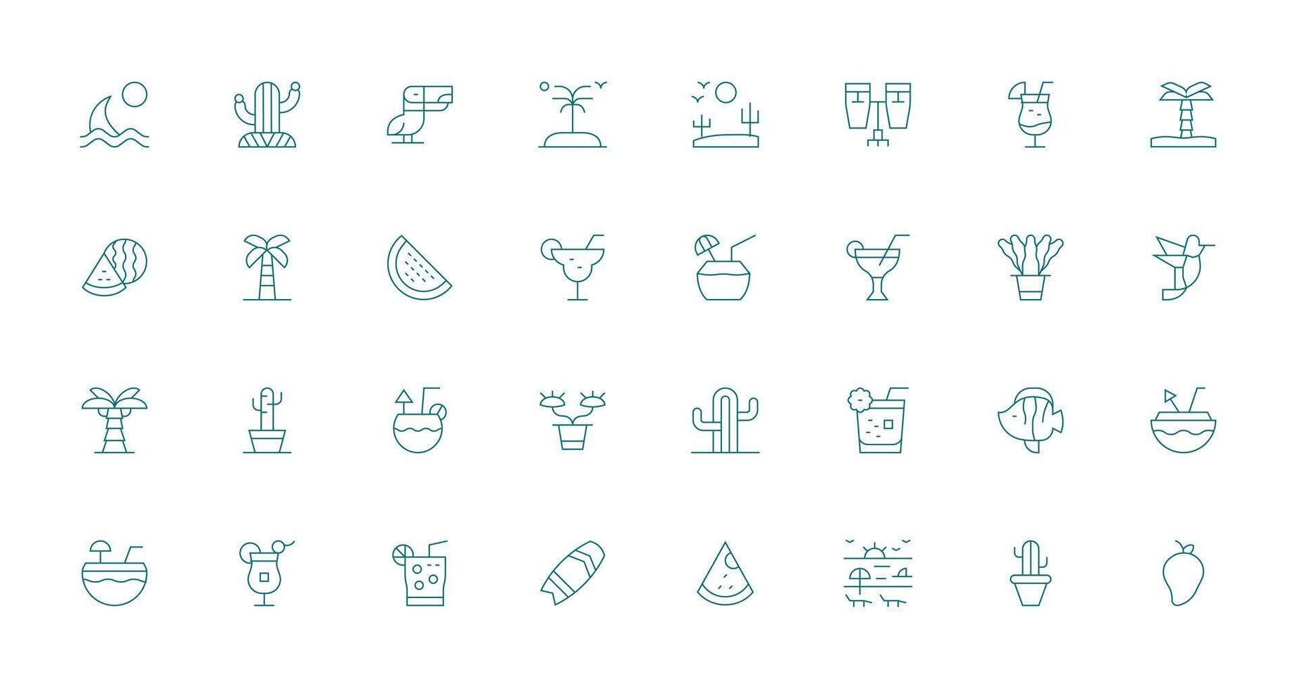 32 Thin Line Icons for Tropical Graphics Simplified Icon Pack for Visual Tools vector