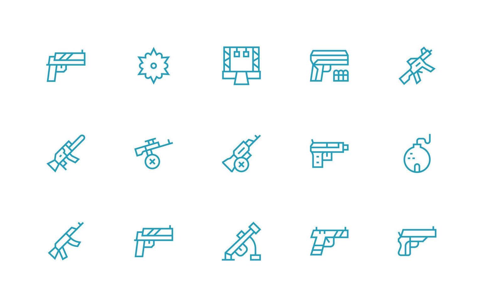 Firearm Set with 15 Regular Line Icons Clean Icon Collection for Web Use vector