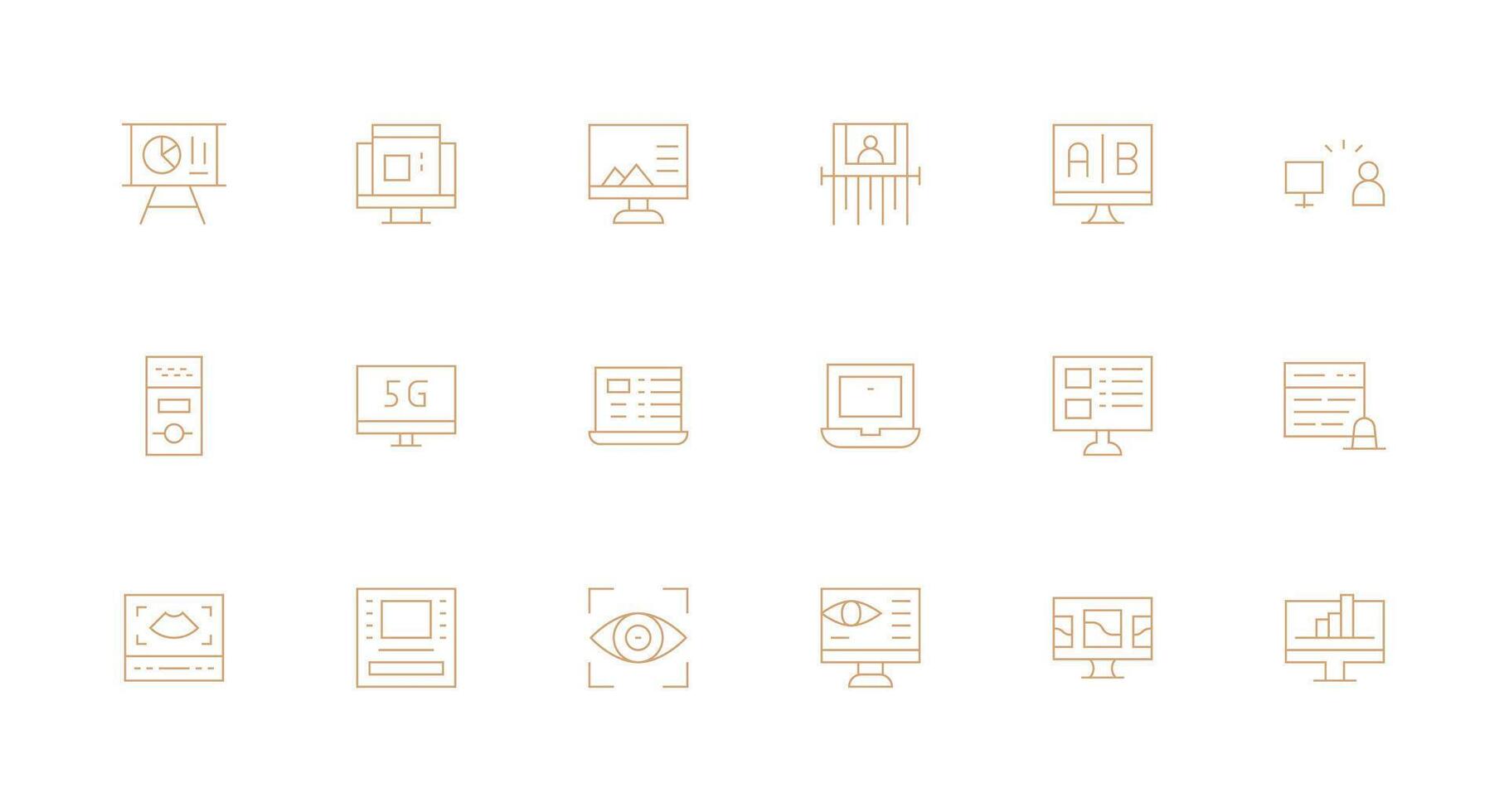 Screen Icon Set with 18 Minimal Line Graphics Neat Icon Set Free Vector