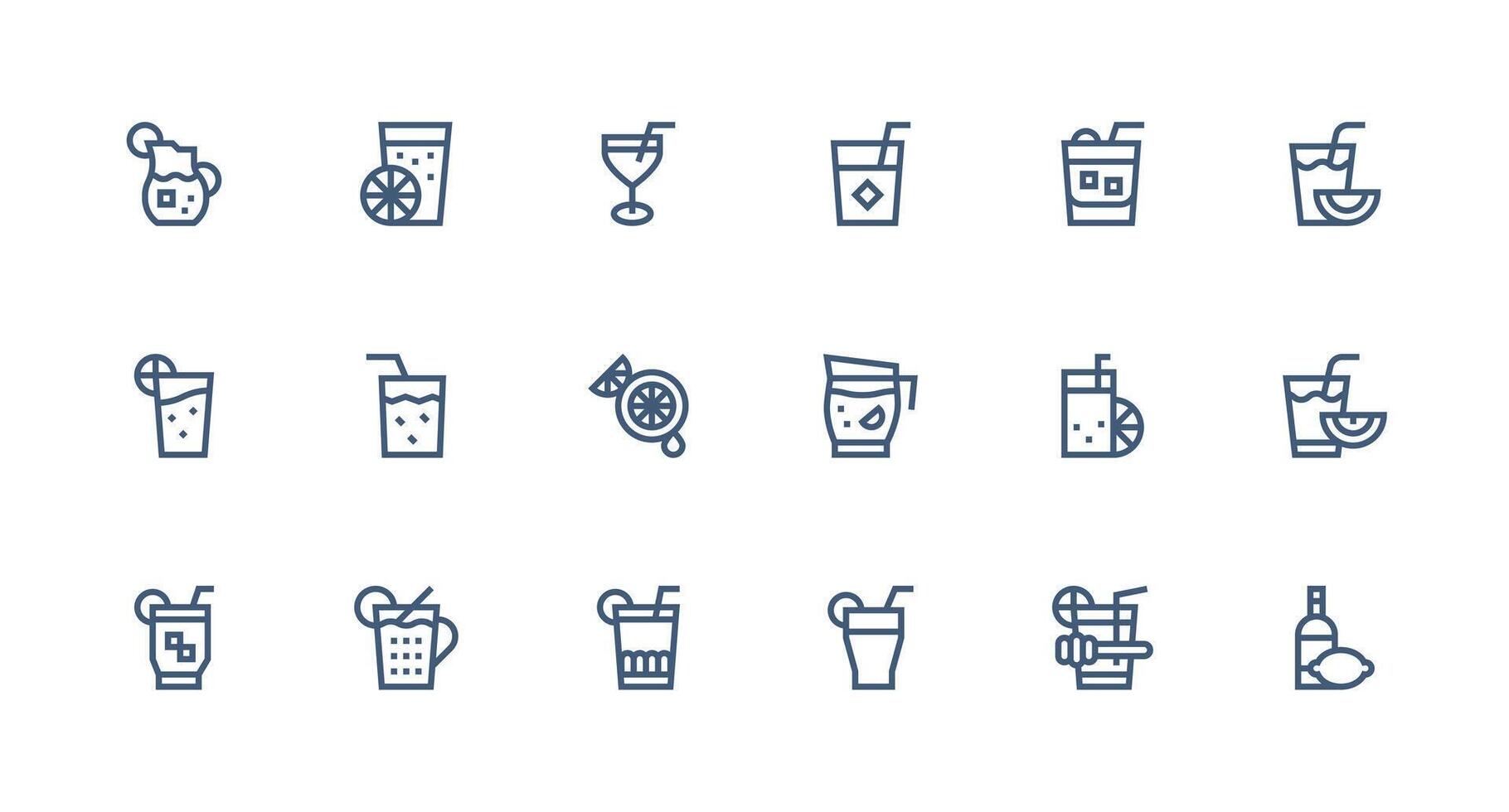 Lemonade Icon Set with 18 Strong Stroke Line Graphics Icon Set for Projects Free Vector
